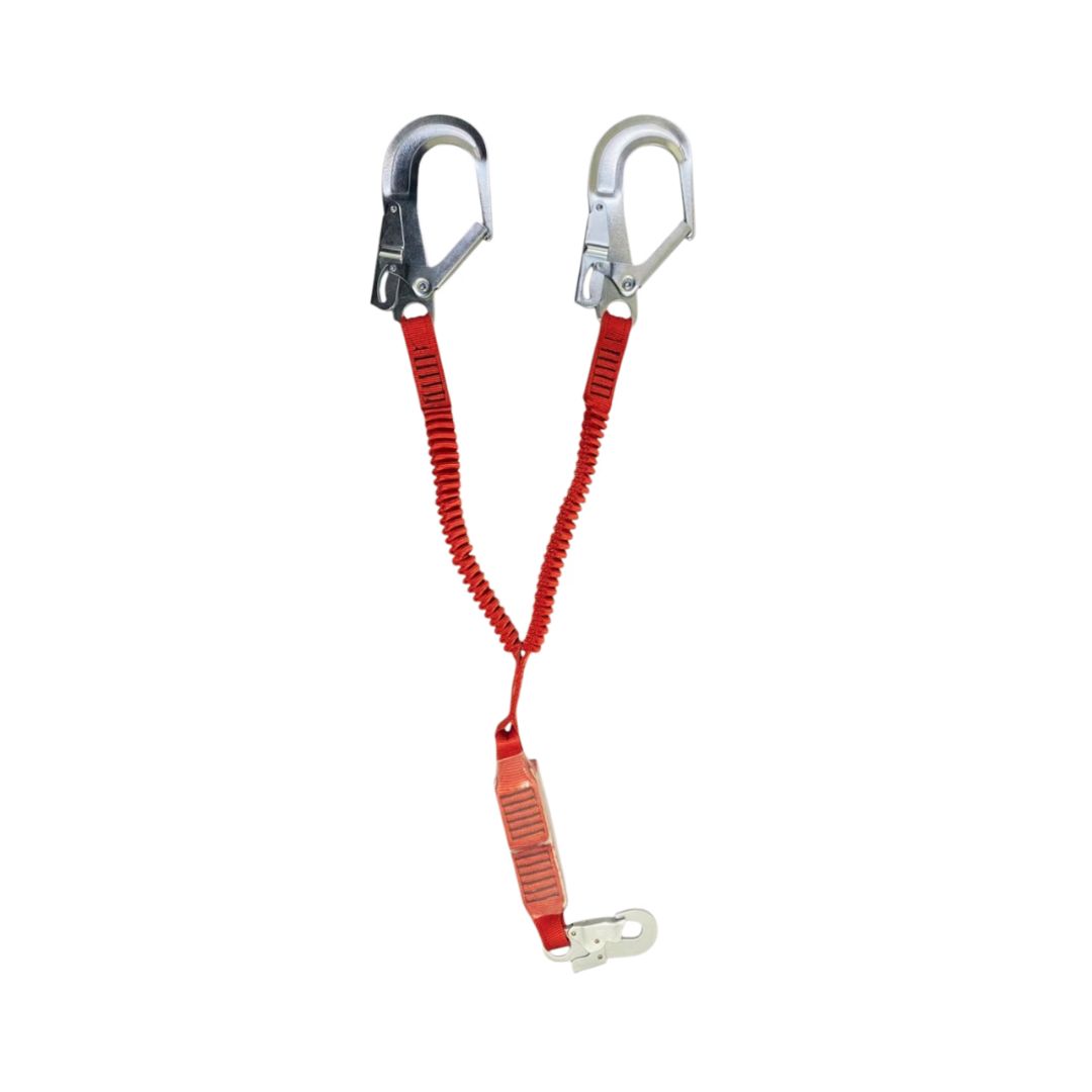 CARACTERÍSTICAS: Cores • Pernas: vermelho • Absorvedor: vermelho Conectores • Um (01) conector classe T (aço) para conexão no cinturão. • Dois (02) ganchos MGO56 (aço) para conexão nos pontos de ancoragem